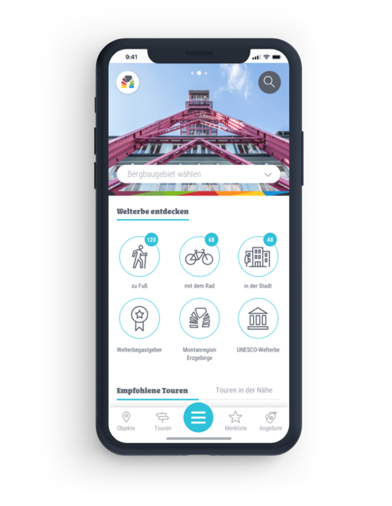 Mit der kostenfreien App „Welterbe Montanregion Erzgebirge/Krušnohoři” sind Sie immer auf dem aktuellen Stand, was Beschreibung, Öffnungszeiten und Kontaktdaten angehen.